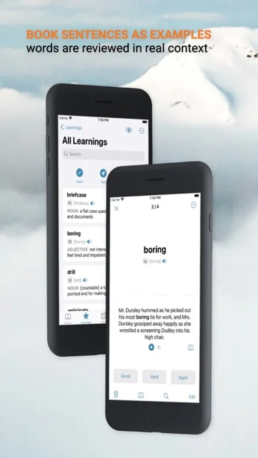 • Learning Tools: Create study sets, add images and example sentences, dictation exercises, export learning materials, supports custom study set sizes and review plans.