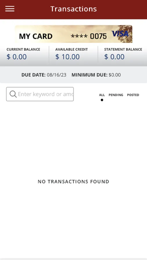 • View recent and pending transactions.