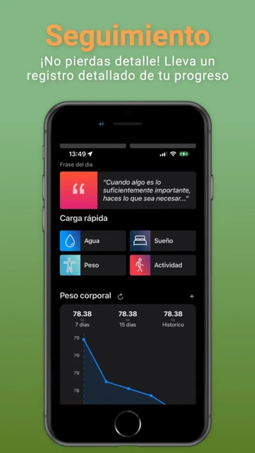 Seguimiento y registro de progreso: podrás tener un registro detallado de tu peso, medidas corporales, resultados de antropometria e informe del diagnóstico y objetivos propuestos.