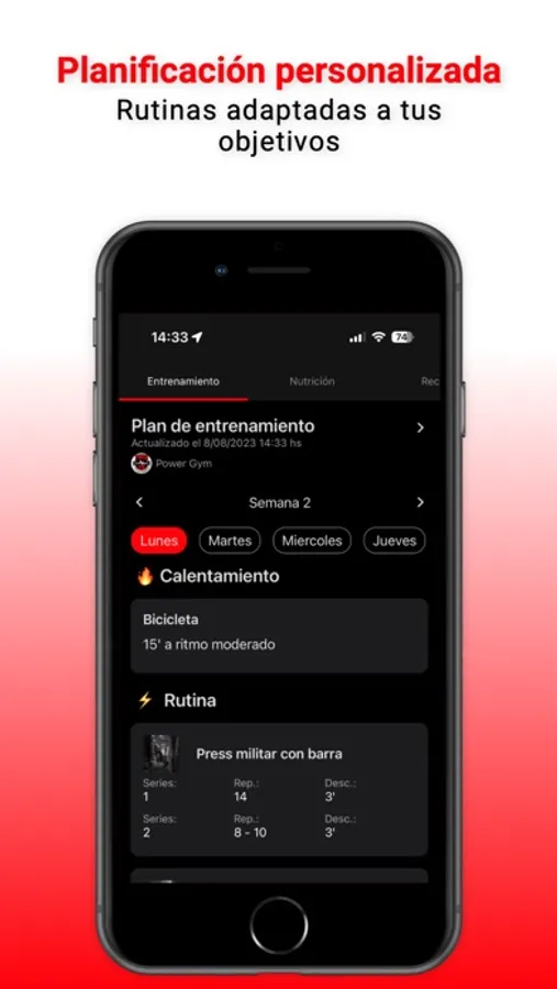 - Rutina de entrenamiento personalizada: Con nuestra aplicación, podrás visualizar tu rutina de entrenamiento personalizada de manera fácil. Cada ejercicio viene acompañado de videos y descripciones detalladas para garantizar que realices los movimientos correctamente y obtengas los mejores resultados.