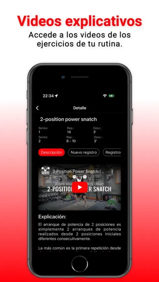 - Registro de entrenamiento: Registra y realiza un seguimiento de tus entrenamientos. Podrás marcar tus repeticiones, series y pesos para llevar un control preciso de tu progreso. Nunca olvides tus registros y mantente motivado con cada sesión de entrenamiento.