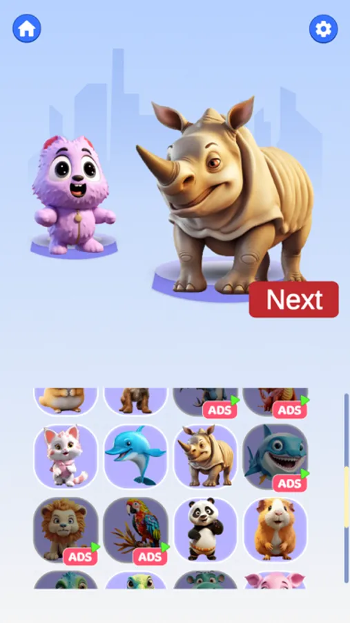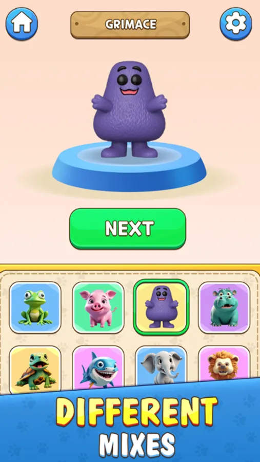 - Choose the animal species you want to combine: dogs, cats, pigs, chickens, dinosaurs, hippos, grimaces, bears, tigers, and more.