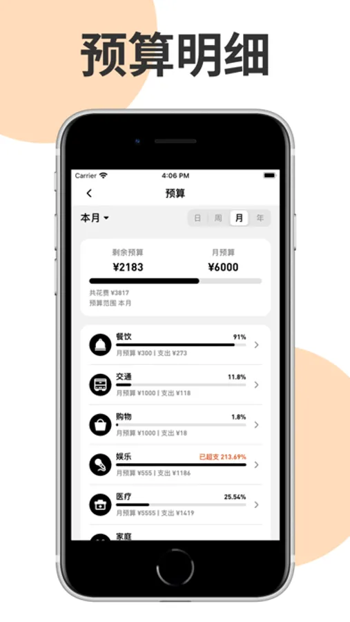 -- 预算管理:设置月预算,并智能规划每日花费。