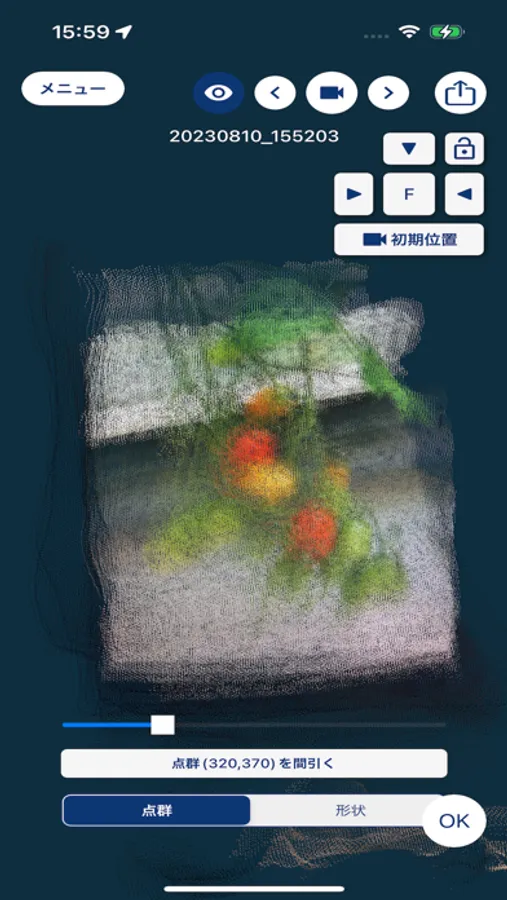 また、スキャン時には農作物を自動で検出でき、保存した点群を使用して農作物のデータを表示・編集することができます。