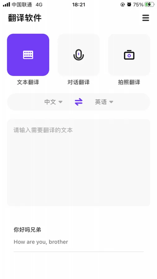 App界面简洁,功能清楚明了,快速找到需要的翻译功能,一键翻译,外语小白的必备