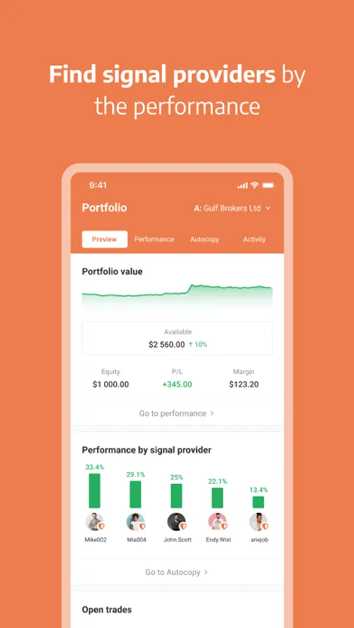 Build Your Portfolio: Through our app, you can create a well-diversified investment portfolio by combining different signal providers and strategies. Take advantage of market trends and optimize your trading performance.