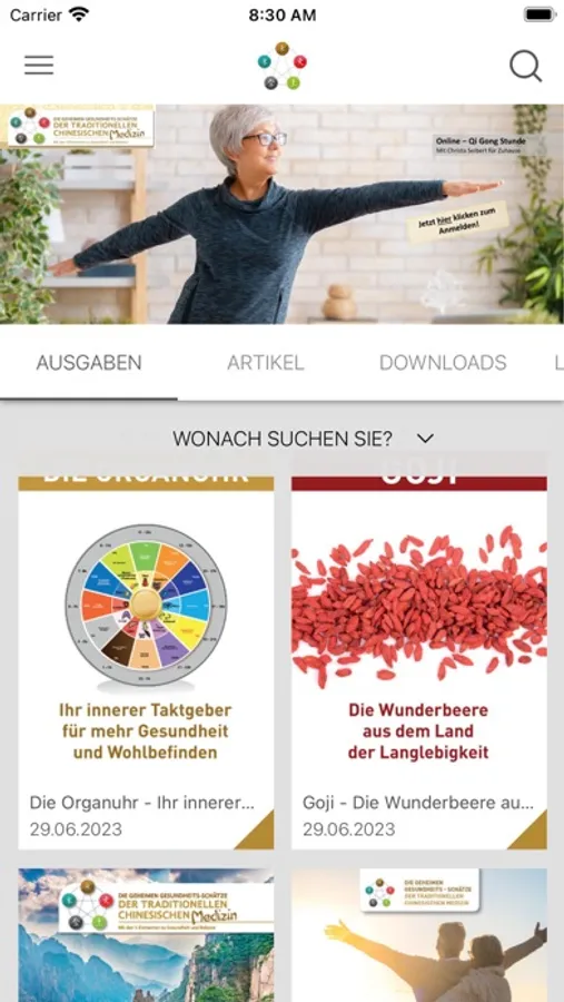 Erforschen Sie die jahrtausendealte Weisheit der TCM und entdecken Sie eine Fülle von wertvollen Ressourcen, die Ihnen helfen, Körper, Geist und Seele in Einklang zu bringen. Unsere App bietet Ihnen eine vielfältige Auswahl an Broschüren, Qi Gong Stunden, TCM Rezepten, Meditationen, Akupressur-Übungen und Entspannungsübungen, die Sie auf Ihrer persönlichen Reise zu Gesundheit und Wohlbefinden unterstützen.