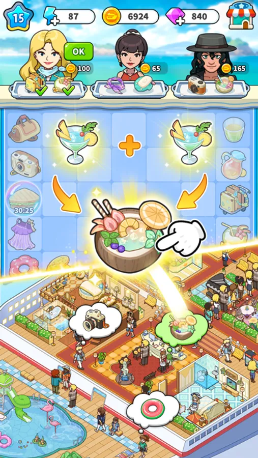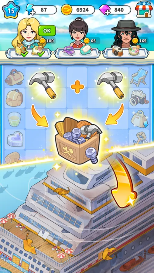 You will experience a mind-blowing merge game, starting from a derelict cruise ship, upgrading facilities, unlocking venues, and providing the perfect vacation for the eager tourists!