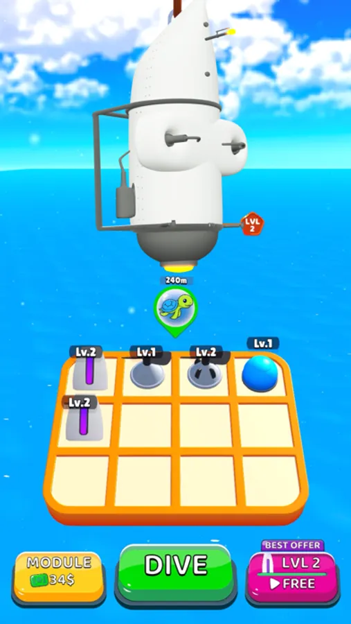 Upgrade your submarine and dive deeper, unlocking new creatures and ships to explore. With every discovery, your submarine will upgrade and improve your chances of uncovering rare treasures.