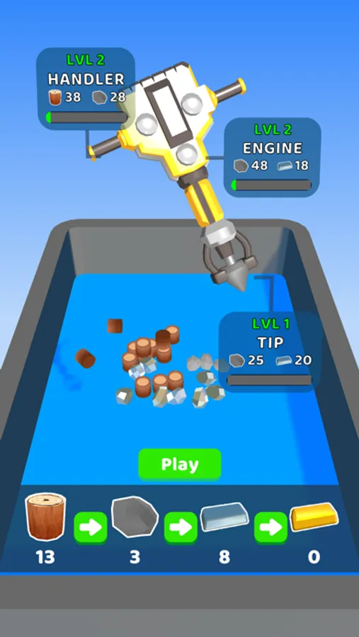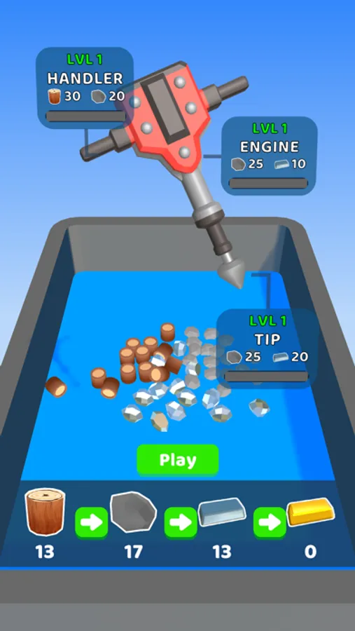 Grab your jackhammer and start to drill! You need to drill different resources to upgrade parts of your jackhammer! Some materials are really hard to drill but your jackhammer will deal with anything!
