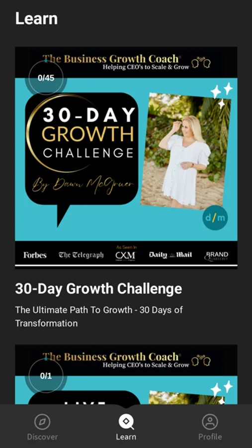 The 30-day growth challenge is aimed at helping you with career or business acceleration or changes, life planning, making fundamental behaviour and mindset changes, and overcoming major life setbacks.