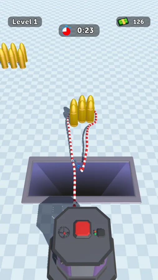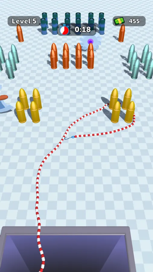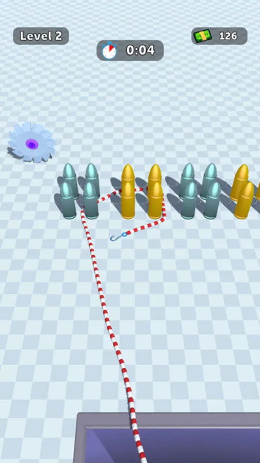 Try to collect the bullets without breaking the ropeeful saw and blades!