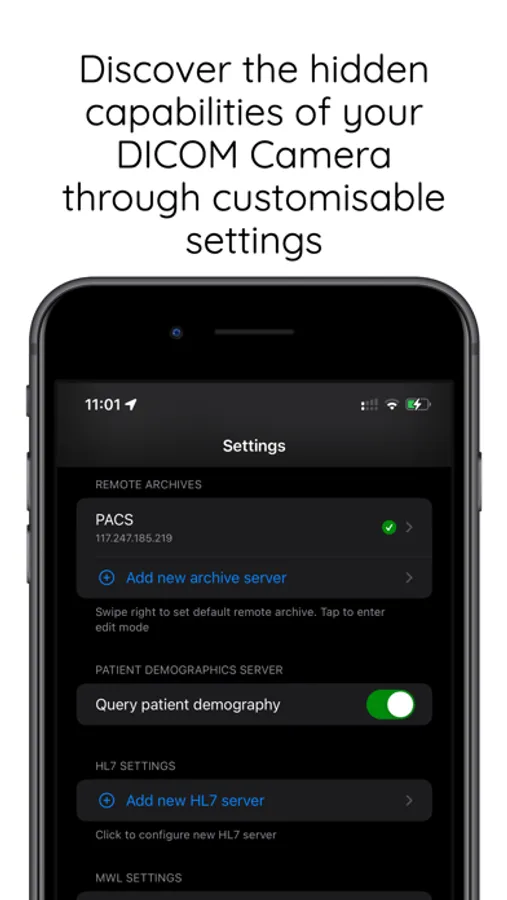 1. DICOM-Enabled Imaging: Capture medical images directly in DICOM format, ensuring compatibility with various Picture Archiving and Communication Systems (PACS) used in hospitals and clinics. Capture medical images directly from your iOS device, ensuring they adhere to the DICOM standard.