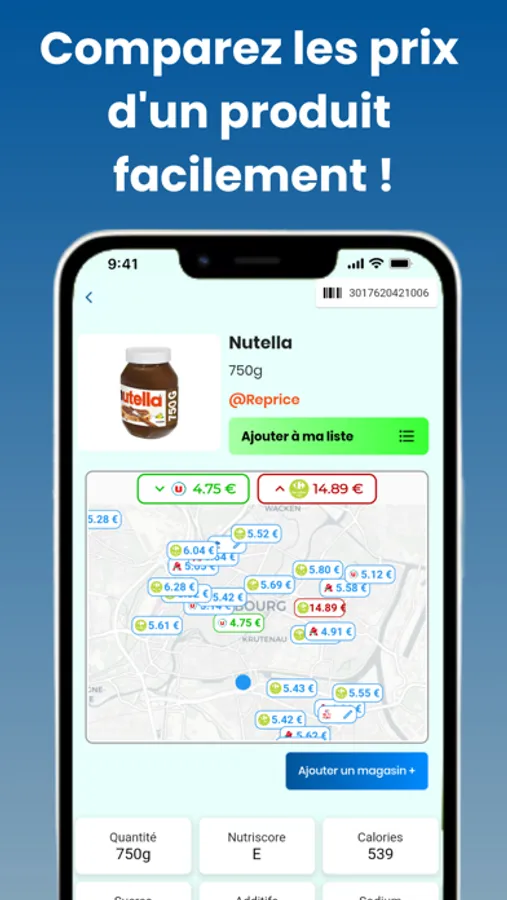 Confidentialité et Sécurité : Vos données personnelles sont sécurisées chez Reprice. Nous nous engageons à respecter votre confidentialité et à ne jamais les partager avec des tiers.Téléchargez dès maintenant Reprice et rejoignez notre communauté d'économiseurs avertis en pleine croissance ! Scannez, comparez, économisez avec Reprice, le meilleur comparateur de supermarchés pour transformer chaque achat en occasion de réaliser des économies importantes.Reprice, le Comparateur de Prix, vous permet de trouver qui est le moins cher. Comparez les supermarchés avec ce comparateur de supermarchés disponible partout en France et dans les Dom-Tom.Trouvez qui est le moins cher et comparez les prix dans les plus grandes enseignes : Leclerc, Carrefour, Lidl, Auchan, Action, Intermarché ! Même les petites épiceries sont présentes sur Reprice ! Comparez vos enseignes préférées au même endroit !