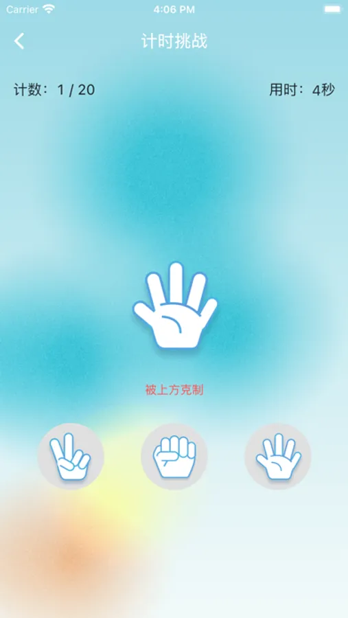 包剪锤克制挑战是一个有趣的应用,通过随机生成手势以及相应的克制或被克制提示语,考验你的反应和专注能力。在这个应用中,你需要根据提示选择正确的手势。