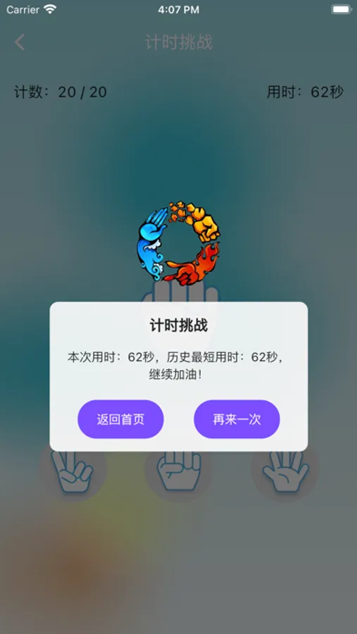 这个应用程序提供了两种模式供你挑战自己。计时挑战模式要求你尽快正确选择20个手势,并记录所用时间。计数挑战模式则是在60秒内,尽可能多地正确选择手势,看你能选对多少个。