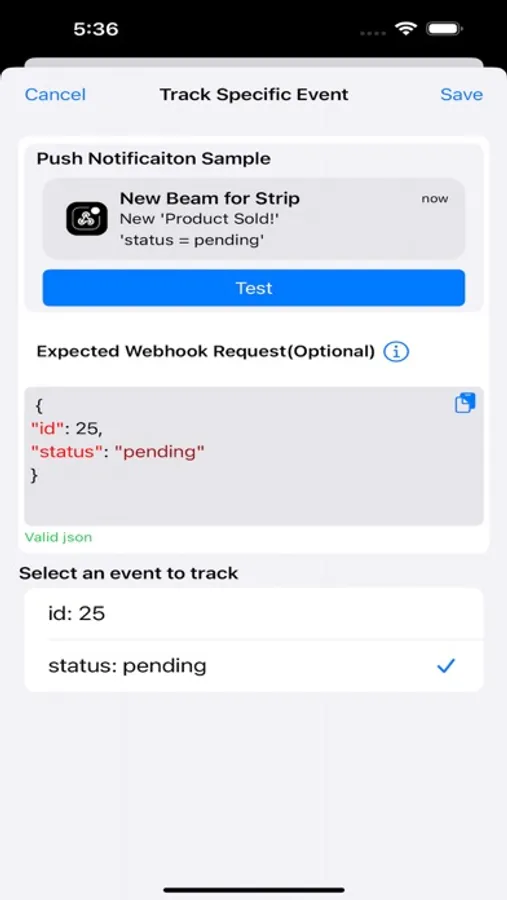 5. That's it! For any event related to your webhooks, you will be notified by push notification to stay informed instantly.