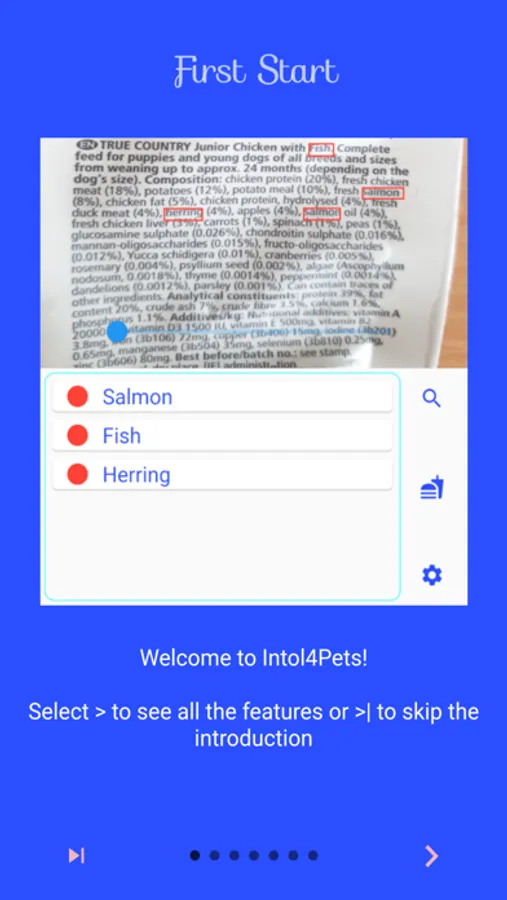 Intol4Pets is an app that uses your smartphone's camera to scan the ingredient lists on pet food. In doing so, it detects ingredients that are incompatible for your pet and marks them with a color. This allows you to see at a glance whether or not the food is suitable for your dog, cat, rodent or bird. A barcode is not required for this. This puts an end to products that are not included in the database, Intol4Pets recognizes all foods.