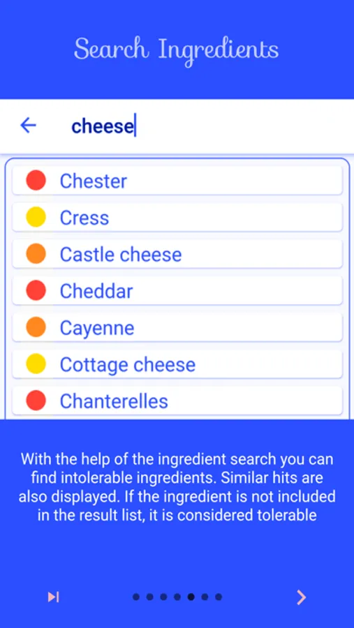 And if you want to search for a specific ingredient, there is a handy search function. Just enter the name of the ingredient and Intol4Pets will find it for you. Similar ingredients will also be found and sorted by color according to the degree of intolerance.