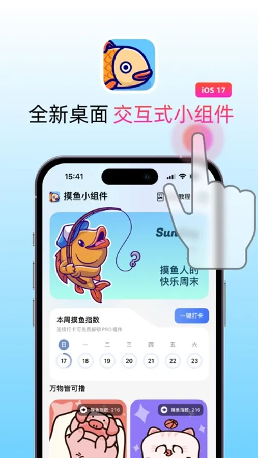 The Fish Hunting widget is a creative and fun interactive mobile widget designed for users who are busy with work but want to find relaxation and entertainment during their break from work. Whether you are an office worker who needs leisure time or a workaholic who craves stress relief, a happy workday can bring you surprises and relaxation.