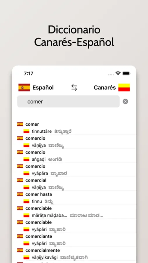 - Posibilidad de buscar a partir de palabras en Español o Canarés