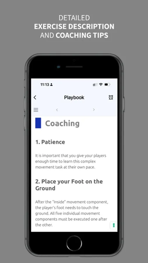 Motor-cognitive training made easy! Our learning app explains each exercise so you can comprehend it and teach it to your players! It features: