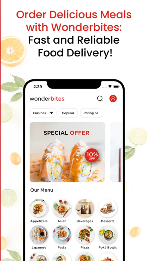 Fast & Reliable Delivery: wonderbites' commitment to excellence extends to our fast and reliable food delivery service. Order your favorite dishes, including sushi, pasta, Tex Mex, and Thai cuisine, and we'll ensure they arrive fresh and piping hot, ready to satisfy your cravings.