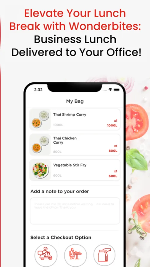 Meal PlanSay goodbye to mundane lunches and embrace a more exciting midday experience. With wonderbites' Business Lunch, you can enjoy gourmet meals, including sushi, pasta, Tex Mex, and Thai delights, delivered straight to your workplace. Elevate your lunch break with a touch of culinary finesse, making every workday something to look forward to.