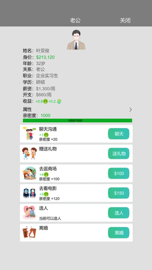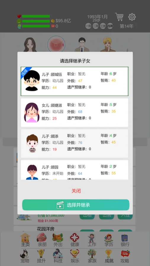 在这里面你可以随机选择自己的出生,然后时刻注意着自己的属性变化,不同的属性将会发生不一样的故事,触发不一样的情节!当属性比较低的情况下意味着你随时都有可能重制你的奋斗生涯,当你的属性保持在一个良好的水平的时候,你就可以去干一些其他有意义的事情,比如说提高自己的生活水平,拥有自己的交通工具,还可以购置自己的房产等等一系列的事情,当然你还可以找到属于自己的爱情,随着你们关系的发展与稳定,你还可以手捧一束鲜艳进行求婚,然后结婚生子创建属于自己的爱巢。在经济方面,你可以进行自主创业,也可以去工厂进行拧螺丝,总之你必须的养活一家人或者你自己,当你的家庭入不敷出的时候,随时就会破产,你的生命也随机会进行重制。