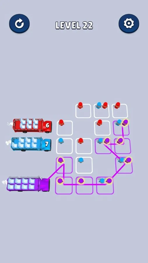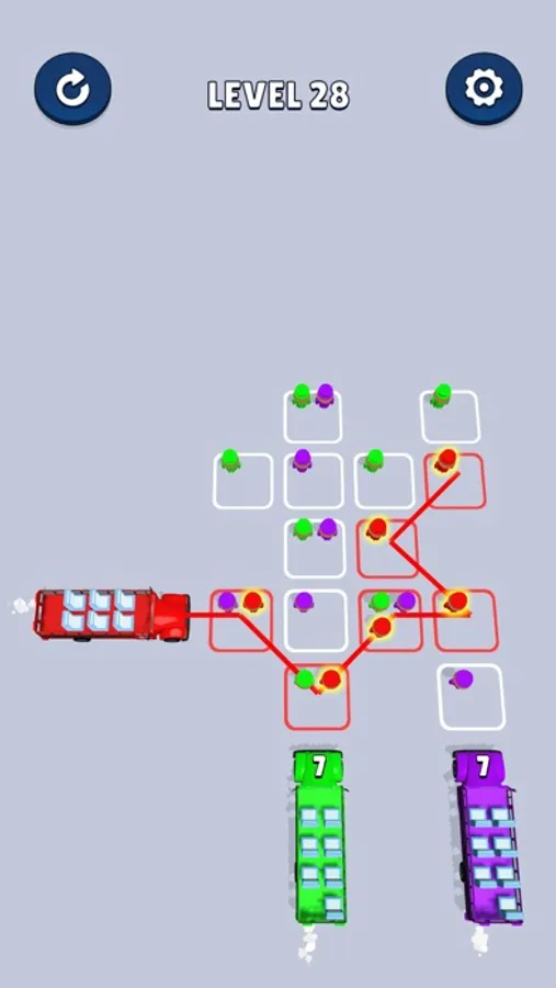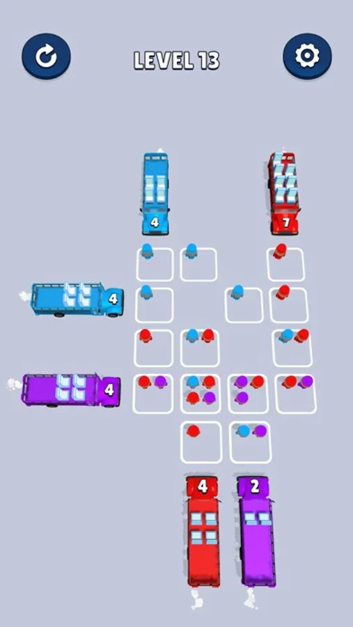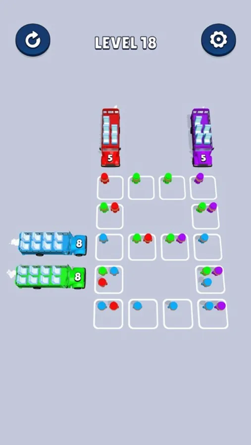 Welcome to Passenger Puzzle, a challenging and strategic puzzle game that will test your logical thinking and problem-solving skills! With buses, passengers, and limited available spaces, your task is to create a seamless transportation system. Plan your moves carefully, guide buses to adjacent stops, and collect all the passengers to complete each level!