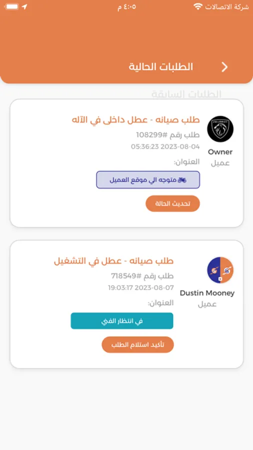 يتابع الفني طلبات الصيانة والزيارات وارسال التقارير للادمن