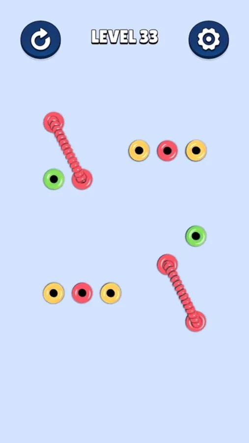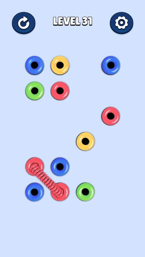 Get ready for an entangling challenge in Rope Match, a captivating puzzle game that will test your spatial skills and logical thinking! Connect same-colored holes by creating ropes between them. Drag ropes without crossing paths and master each level's intricate puzzle. Can you navigate through the tangled complexity and solve them all?