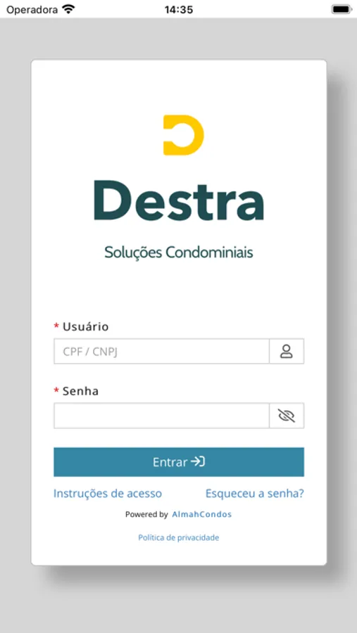 Este aplicativo é exclusivo para usuários da Destra Soluções Condominiais.