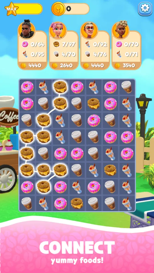 Embark on a captivating puzzle adventure in Foodie Link, where your strategic thinking is your key to success! Dive into a world of colorful food and beverages and intricate challenges as you link matching items on a gridded board to complete orders and earn rewards. Unleash your inner puzzle-solving guru and watch as the board comes to life with every successful connection!