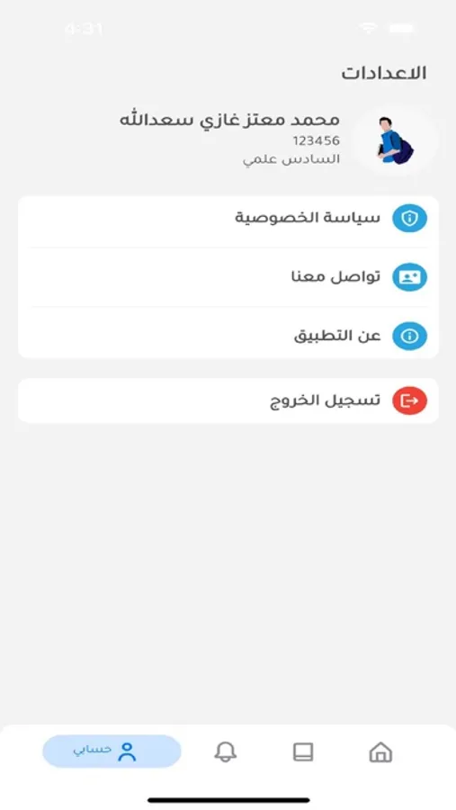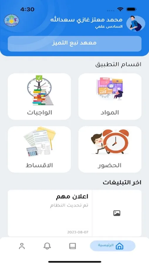 تطبيق يربط الطالب بالمدرسة عن طريق نظام ادارة يمكن الطالب من متابعة جميع الدروس والواجبات والحضور والدرجات
