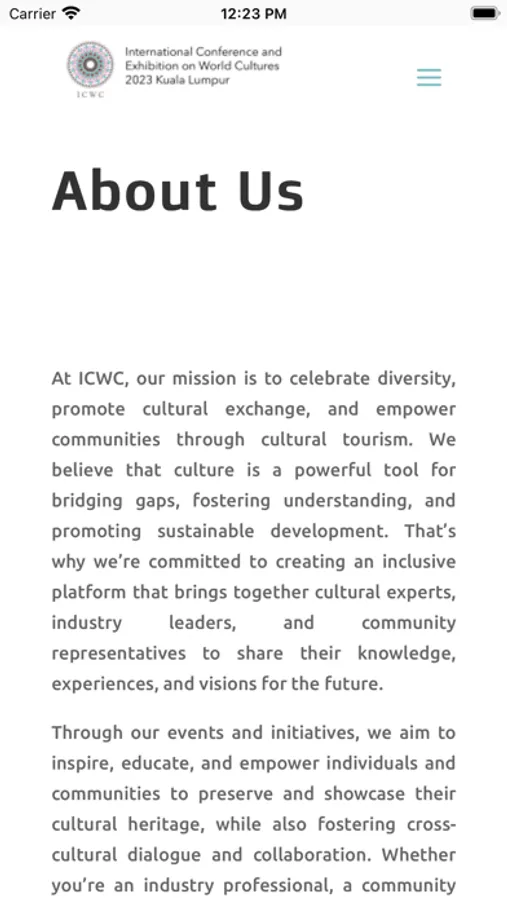 The ICWC App is more than just an event companion; it's an invitation to discover, connect, and celebrate the captivating world of cultures, right at your fingertips. Embrace this digital wonder and let the ICWC App be your guide on this unforgettable odyssey!