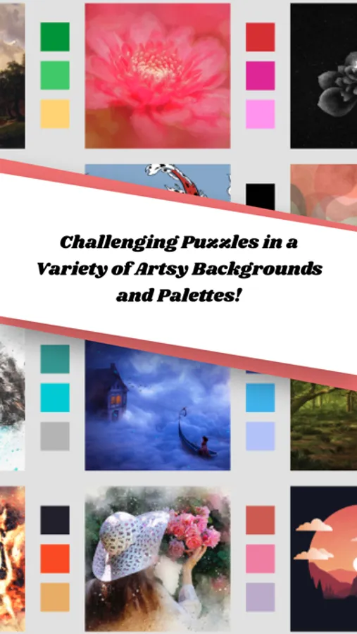 Play through beautifully crafted art pieces and color palettes to the tune of relaxing lo-fi music tracks and satisfying sound effects!