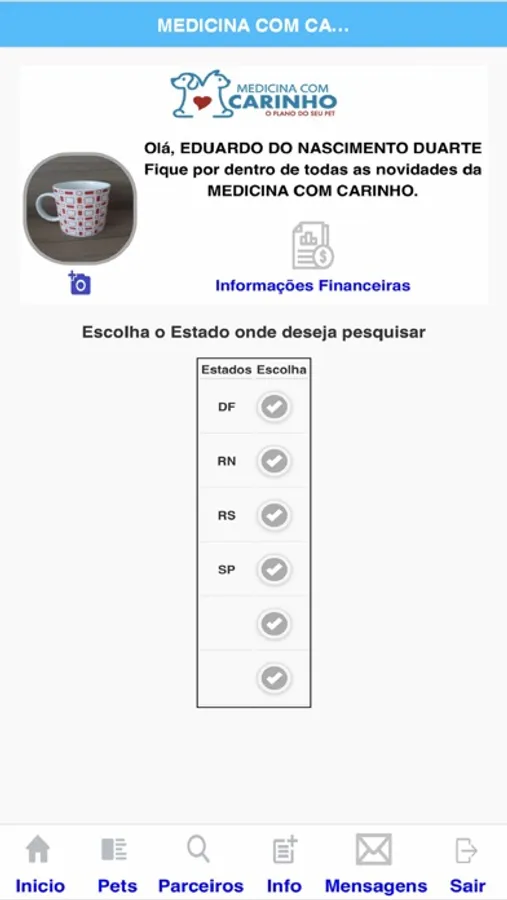 O Aplicativo disponibiliza as seguintes informações: