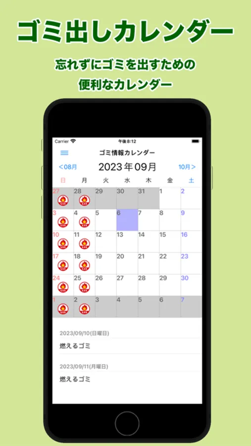 - 「ゴミ出しマスター」で、煩わしいゴミ出し情報の管理をお手軽に行えます。カレンダー形式で次回のゴミ出し日を一目で確認しましょう。