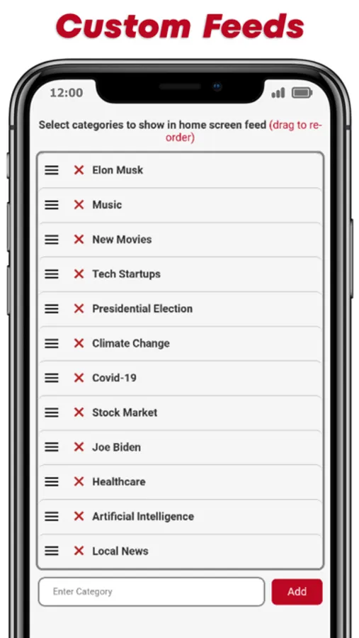 * Personalized News --- Create your own news categories to display on your home screen or choose from pre-selected options ranging from politics, technology, sports, entertainment and more.