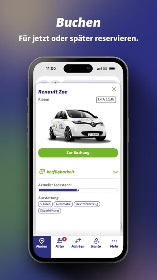 Die App ist Ihr Schlüssel zu unseren Carsharing-Autos. Klicken Sie auf Ihre aktuelle Buchung und geben Sie Ihre Öffnungs-PIN ein – schon öffnet sich die Zentralverriegelung.