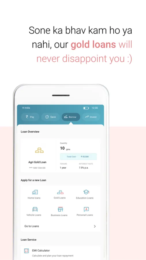 a) View and transact from all your accounts including Loans and Deposits