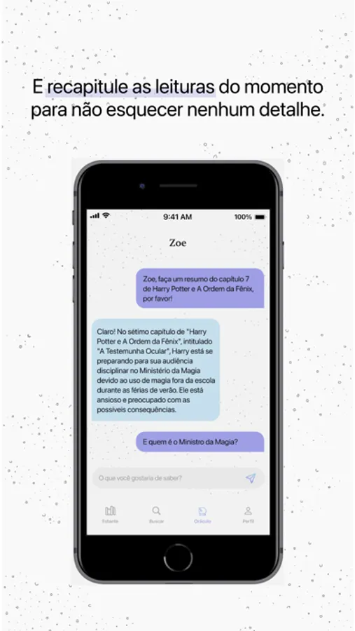 ZOE, Sua Bibliotecária Virtual: Tenha uma IA literária pessoal que oferece resumos, sugestões e informações sobre autores.