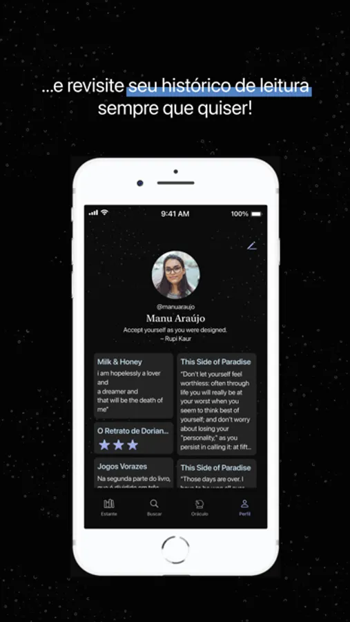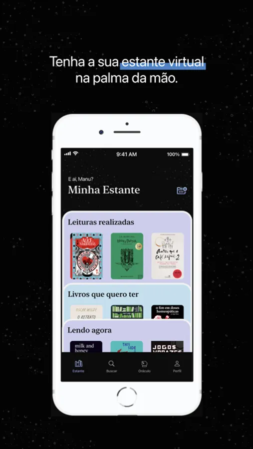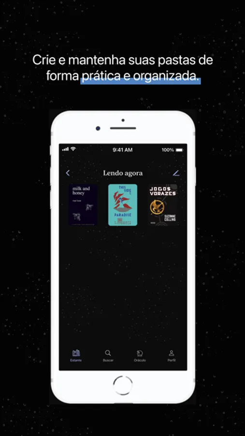 Estante Virtual no Seu Bolso: Crie pastas para organizar suas leituras, compartilhe seus favoritos no Instagram e carregue uma estante inteira no seu dispositivo.
