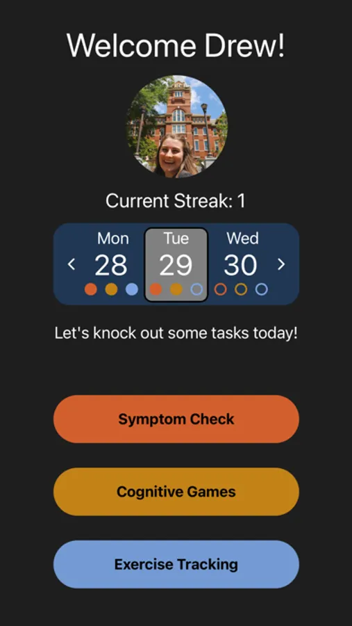 Gamified Concussion Testing: Engage your cognitive abilities with gamified concussion testing. Games are based on commonly used concussion batteries that track your memory, focus, and reflexes. Regular testing provides a clear picture of your cognitive progress, allowing you to adapt your recovery plan as needed.