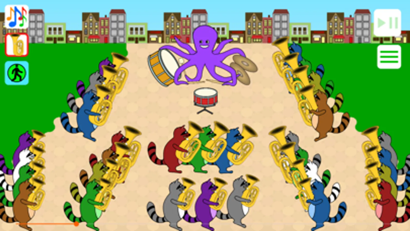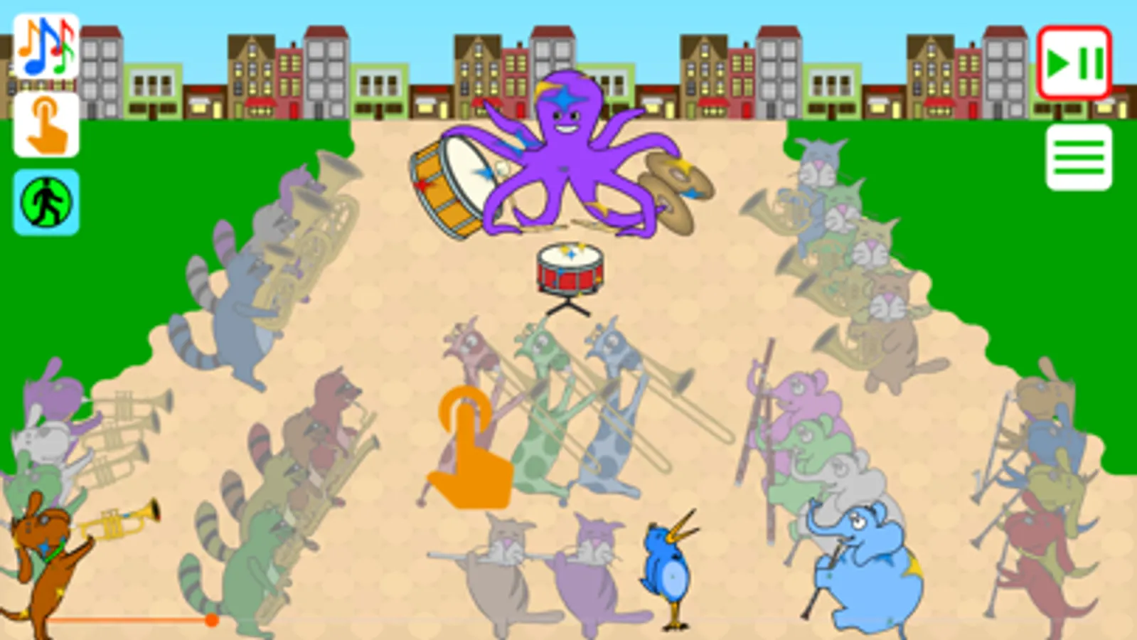 and you are in control. Bold character animations visually track the melodies of the song. Watch the whole 32-piece band, feature soloists, or point at just the musicians you want to hear. Select from 13 different instrument modes and add a little fun with special effects.