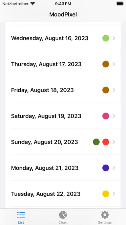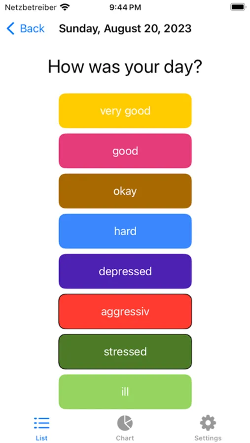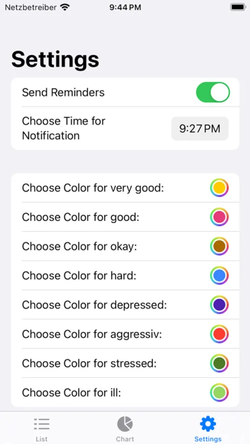 Track your mood changes every day in a very easy way. You can choose up to three moods per day, out of 8 different moods. You can set a reminder for any time of the day and change the colors of any mood.