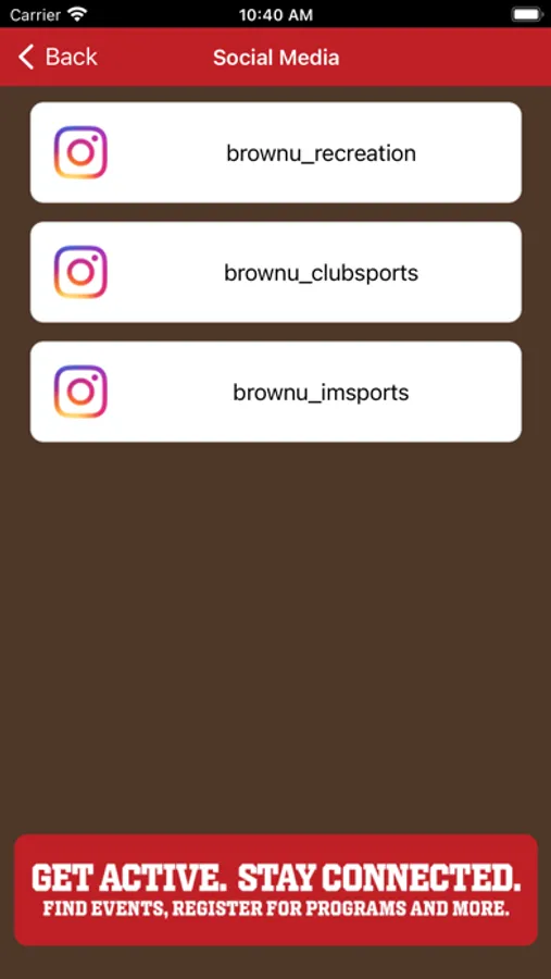 Welcome to the official app for Brown Recreation. Stay up to date on imp[ortant information and be the first to know when Brown Recreation is offering something special or new. Conveniently scan in, access facility and pool hours, register for classes and more!