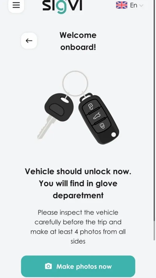 You are ready to go now! Self checkin - checkout process allows you to pickup the car any time you want without any arrangements. You control everything!