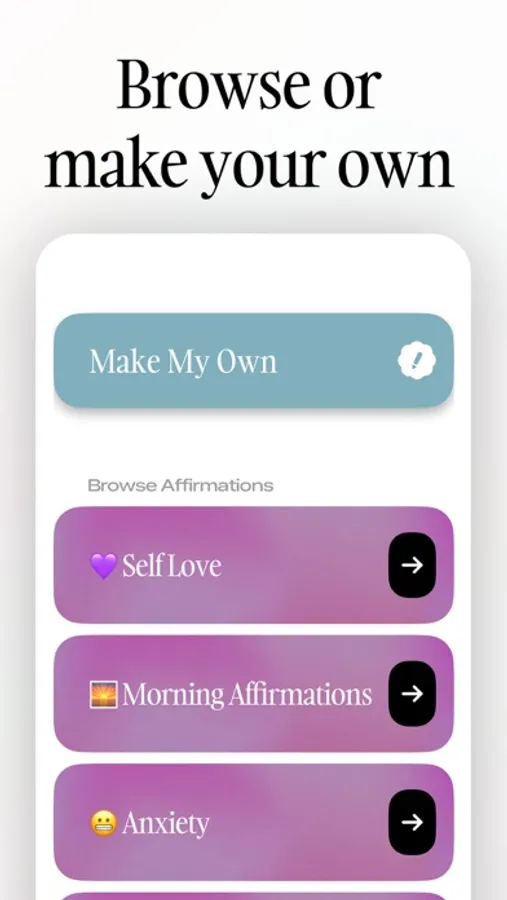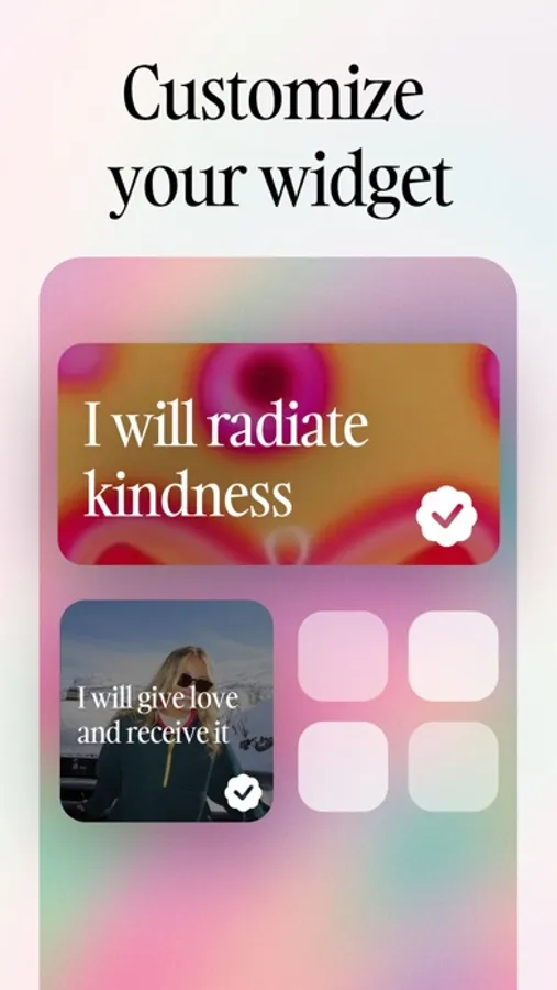 Fight negative thoughts and uplift yourself with with daily affirmations right on your home screen. Beautiful notifications and a customizable widget make it easy and fun.